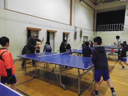卓球のお別れ試合には保護者の方も観戦に来られていました。教職員vs6年生の試合の横で教職員vsお母さんの試合も行われ,和気あいあいとした雰囲気の中でのお別れ試合でした。