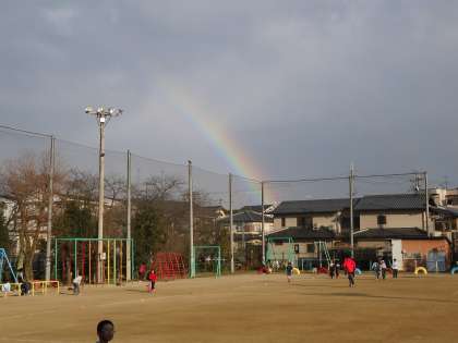 部活動お別れ試合の合間に,運動場には虹がかかっていました。6年生の皆さん,教職員とのお別れ試合はどうでしたか?また中学校でも目標をもって頑張ってくださいね。