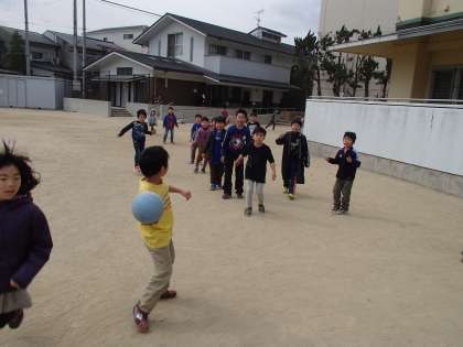 それでもやっぱり休み時間には普通のドッヂボールが一番のようです。この間まで身体の正面にばかり投げていたのが,軸をずらして狙ったり,足元を狙ったりと,次第に上手になって来ました。