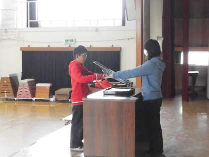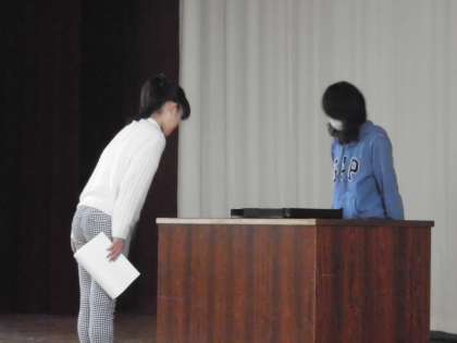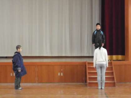卒業証書を受け取る練習です。一人一人返事をした後,卒業証書を受け取ります。証書の受け取り方,礼の仕方など一つ一つの動きを確認しながら練習を進めていきました。