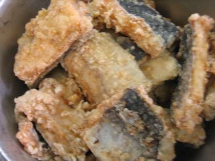 「さわらのたつたあげ」の鰆は春にたくさん捕れる魚です。今日はさわらをしょうがとしょう油・料理酒につけ、米粉と片栗粉をまぶして油で揚げました。サクサクとして美味しかったです。