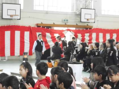 保護者や地域の方々,教職員,そして5年生に見守られて,平成28年度の卒業式が開かれました。卒業生はたくさんの拍手の中,胸を張って入場してきました。