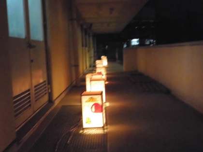 陽が沈み,ライトが点灯されました。とても素敵な光景です。みんなが頑張って描いた絵も美しく照らされています。