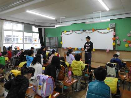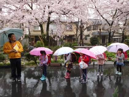 1年生はしばらくコース別に先生と一緒に下校します。今日はあいにくの雨でしたが、みんなで安全を確かめながら下校していきました。自分たちで安全に下校ができるように、明日からも気をつけて帰りましょうね。
