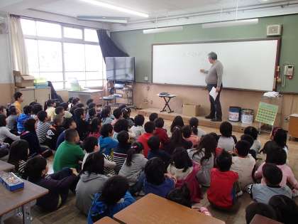 教室に戻ってみると,「朝日がサン♪」と口ずさむ子どもたち。もうすっかりノリノリです。