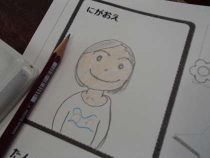 国語科での自己紹介に向けて,自己紹介カードを描きました。似顔絵欄は色とりどり,自画像にも個性が表れます。今日も元気いっぱい,楽しそうな子どもたちです。