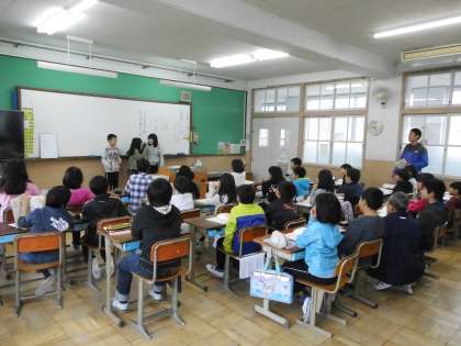 4年生は国語の学習に入りました。ノートの使い方をみんなで確認したり、教科書の最初にある単元の学習に入りました。家で音読の宿題にも取り組むことだと思います。おうちの方にもしっかりとした音読の声を聞いてもらうようにしたいですね。