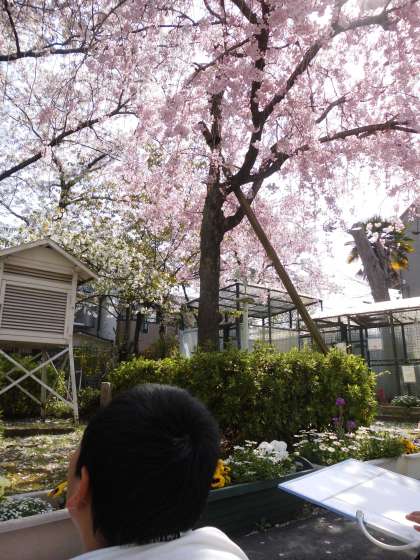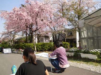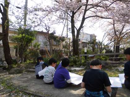 昼からは,4年生も5年生と同じように草花をスケッチしに外へ出てきました。春の暖かな日差しがとても気持ちいいです。