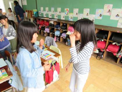 ALTのマリア先生に来て頂き、初めての外国語の活動を行いました。今日は、自分の名前を「My name is ○○.Nice to meet you.]と友達同士で交流しました。笑顔で楽しそうに自分の名前を伝えていました。