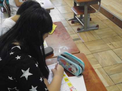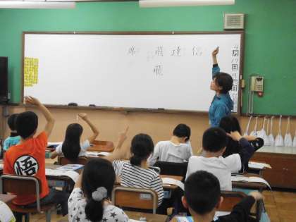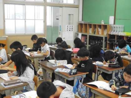 2組では新出漢字の学習です。4年生ともなると画数も多く難しい漢字も出てきますが,先生と一緒に丁寧に集中して練習していました。ドリルに書き込む姿勢もしっかりしてきました。