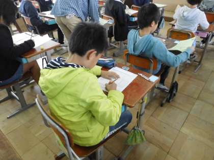 本校の6年生も,午前中,全国学力学習状況調査に取り組みます。担任の先生から説明があり,テスト用紙が配られました。国語A・算数Aのテストの後,今国語Bのテストに取り組んでいます。