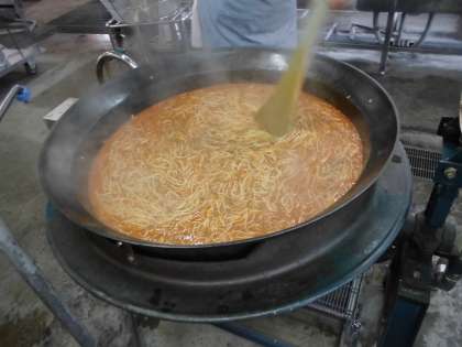 14日は給食初日でした。この日は、1年生をお祝いする献立でした。スパゲティの麺が伸びないように、みんなの食べる時間に合わせてゆであげました。