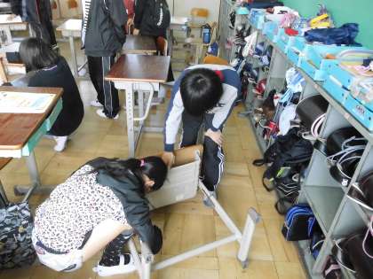 6年生は,机・いすの高さの調節を自分たちでしています。いい姿勢で集中して学習に取り組んでいきたいです。
