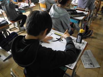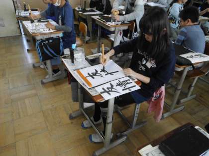 習字にも取り組みました。めあてを意識して,手本をしっかり見ながら,「友情」という字をていねいに書きました。