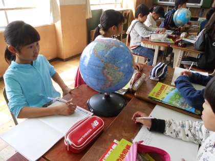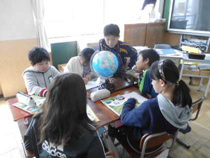 社会では,地球儀を使って,日本とまわりの国々の位置関係を確認したり,世界の大陸や海洋について調べたりしました。4年生までと違って,自分たちの生活とは遠くかけ離れたことも学習していきます。これからの学習がまた楽しみです。