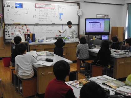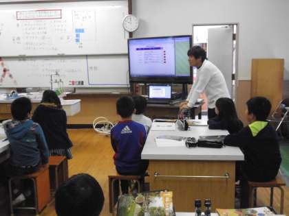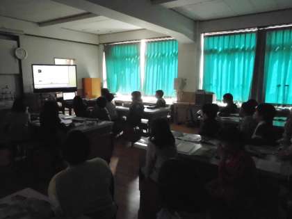理科室での学習です。この春の季節,身近にいる動物・植物がどんな様子かをみんなで考えました。今日は映像資料で動植物の様子を観察しましたが,また屋外で実際に観察して,くわしく知っていきたいですね。