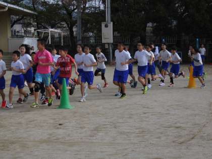 6年生の朝の陸上の取組がスタートしました。大文字駅伝大会に向けて,また,体力向上を目指して,と,それぞれ目標の掲げ方は違いますが,継続することで力を付けていくことができるといいですね。お互いに励ましあいながらこれからも頑張ってほしいです。