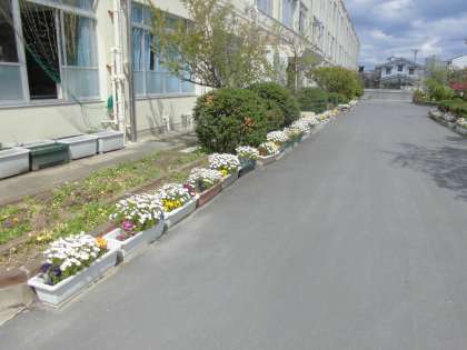 桜も終わりに近づきましたが、校内は春の花でいっぱいです。1番上の写真は、秋に黄色い大きな実のなるかりんの花です。