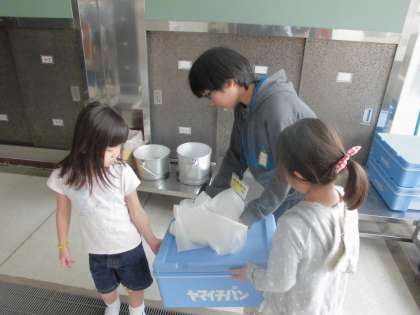 給食委員会の活動は、クラスごとで当番を回します。今日も5年生が当番でした。活動に慣れ、周りの様子に合わせて自分たちの動きを考えてできていました。