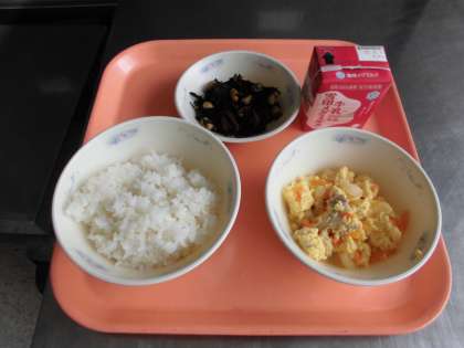 胚芽米ごはん・牛乳・親子煮・ひじき豆