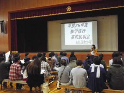 参観・懇談の後,6年生は修学旅行説明会,4年生はみさきの家説明会を開きました。どちらも,持ち物の用意をお家の方も一緒にしていただくことになると思いますが,よろしくお願い致します。また不明な点がありましたら,担任までおたずねください。