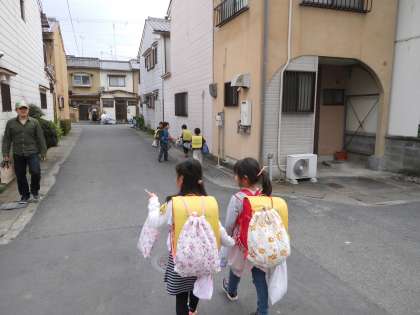 これまでは先生と一緒にコース別に下校していましたが,今日から自分たちで下校していきました。先生と一緒に帰っていた時のことを忘れず,安全に気をつけて帰るようにしましょう。
