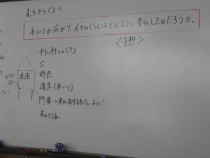 社会の歴史学習です。長い歴史の中で,米を作るようになってから人々の生活は劇的に変化していきました。食卓にご飯が出ることは今では当たり前のことですが,お米の出現はどんな当時の人たちにとってどのようなものだったのか考えました。