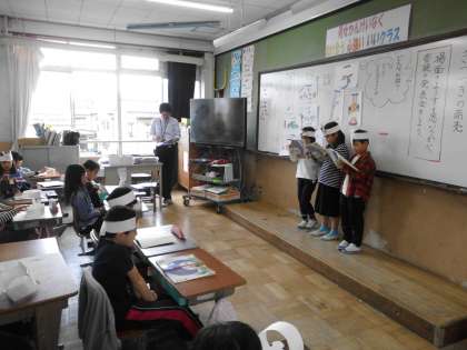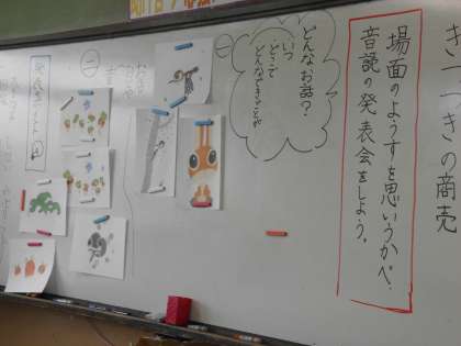 3年生は国語の「きつつきの商売」の音読発表です。それぞれ役になりきり,工夫しながらの発表です。楽しくお話を聞かせてもらいました。