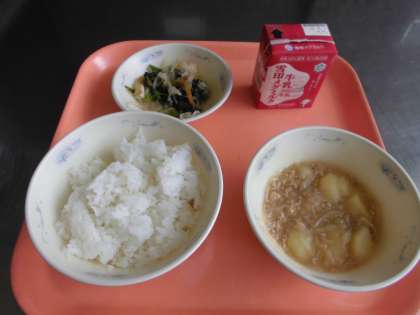 子どもたちから、じゃがいものそぼろ煮は、しょうがの風味がして、ごはんに良くあいました。切干大根も、シャキシャキして美味しかったですと、感想をいただきました。