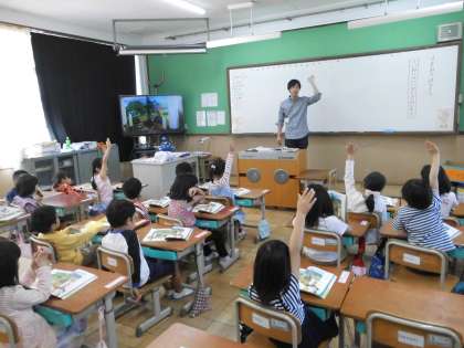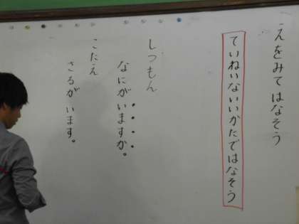国語の「えをみてはなそう」の学習で,丁寧な言い方をみんなで学習しました。自分の思いや考えを相手に伝えようと思うと,しっかりとした言い方をしないと伝えられません。今日学習したことを,これからの生活にも活かしたいですね。