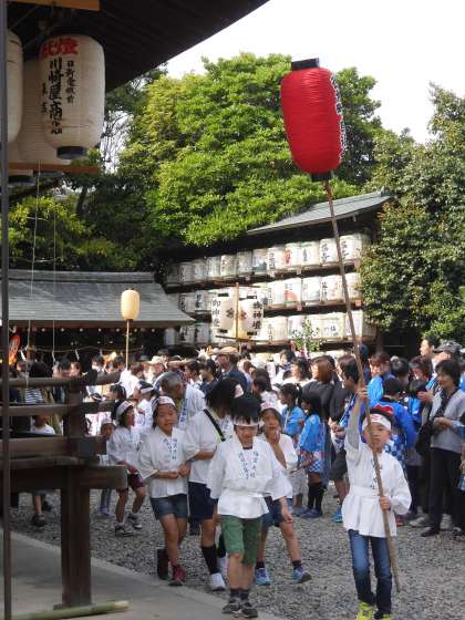 おはらいを受けたみこしは,各町内を廻っていきます。「わっしょい!わっしょい!」の掛け声と太鼓や笛の音を響かせながら,町内を元気よく廻っていきました。