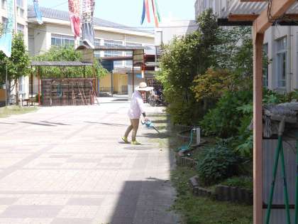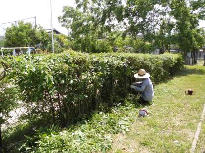 管理用務員さんが,日々草刈や樹木の剪定を少しずつ進めてくれています。暑い夏に入るまでに,少しでもすっきりとした環境でみんなが過ごせるようにと,作業してくれています。ありがとうございます!
