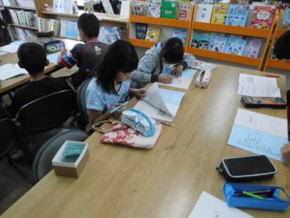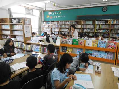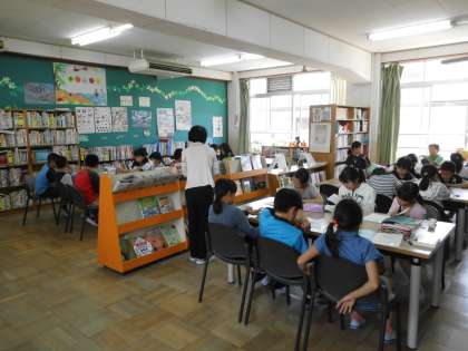 学校司書の先生と一緒に,図書館開きをしました。5年生は,図書館でただ本を読むだけでなく,調べ学習などでも図書館を活用していくことになります。これからもおおいに図書館を活用してくださいね。