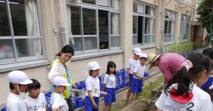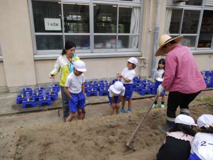 2年生は,地域の方々にお手伝いいただいて,生活科でサツマイモを育てます。苗を来週に植えるので,今日は畑の草を抜き,肥料などを入れて準備をしました。大きなサツマイモになるように,またみんなで頑張って育ててくださいね。
