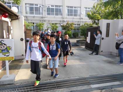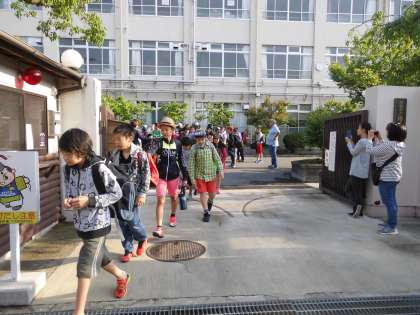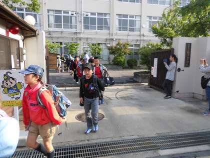班長の司会で出発式をしました。そして,教職員,家族の方々に見守られながら,みんな元気に出発です。