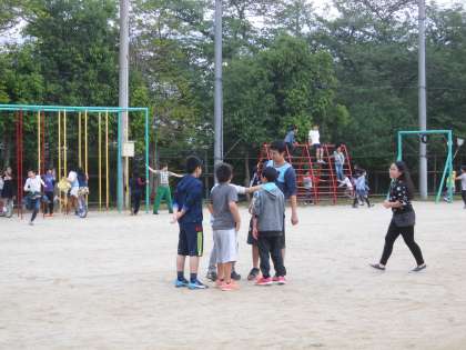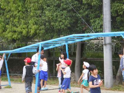 1年生も運動場に出て元気に遊んでいます。担任の先生と一緒に遊具で遊んだり,おにごっこをしたりと,みんなも,そして先生たちも元気いっぱいです。