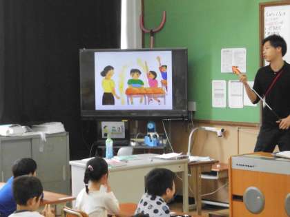 道徳の学習です。資料の挿し絵から,どんな気持ちなのかを考えます。先生と一緒にみんなで考えたことを発表しあいました。