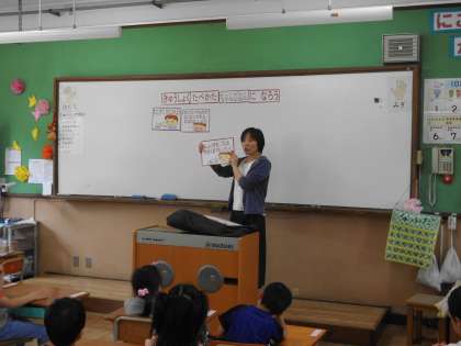 栄養指導の先生と給食のことについて一緒に学習しました。前回の学習を振り返るとともに,今日の給食に出てくる煮魚の上手な食べ方を教えてもらいました。