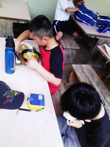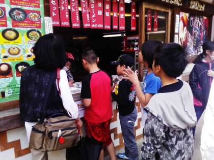 リトルワールドでグループ毎に昼食です。ここは台湾料理。台湾ラーメンや小籠包…