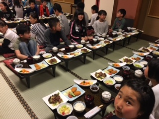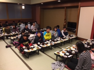 お風呂に入り、いよいよお待ちかねの夕食となります!メニューは名古屋名物味噌カツです!友達みんなと食べる夕食。旅の楽しみの一つですね。
