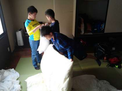 おはようございます。朝子どもたちの部屋を見てみると、すでに協力して、布団や荷物を片付けていました。スリッパも綺麗に揃っていて、ばっちりでした!