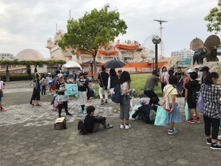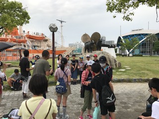 タロ、ジロ像の前で記念写真、これからバスで京都への帰路につきます。