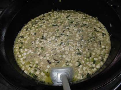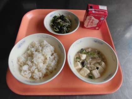 玄米ごはん・牛乳・とうふのそぼろ煮・ほうれん草ともやしのごま煮