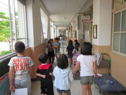 生活の勉強で2年生と学校たんけんをしました。学校の中で行ったことのない所や知らなかった所を2年生に案内してもらい、楽しそうに探検していました。