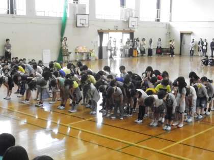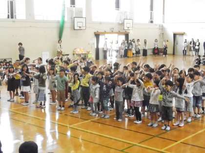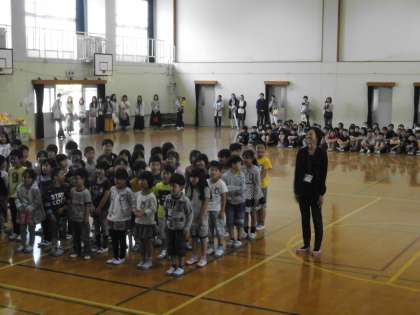 先日1年生と一緒に学校たんけんをした2年生は,かわいらしく歌を発表です。2年生の2人の担任の先生のことも1年生に教えてあげました。