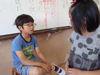 道徳では「ぼくらの野球チーム」という題材を扱いました。チームのエースピッチャーが,ここ一番の試合で体調を崩し,途中交代をするときの心情や,それを取り巻くチームメイトや監督の言葉がけを考えました。ロールプレイで監督役やチームメイト役をやってもらうと,ノリノリでセリフを言ってくれます。学習も楽しんでしています。