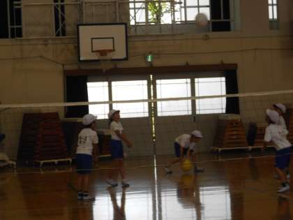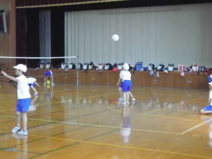体育でソフトバレーボールの学習に入っています。4年生にとってはバレーボールは難しいですが,ボールは柔らかく扱いやすいものを使ったり,ルールを工夫したりしてやっていきます。チームで協力して力を高めていけるといいですね。