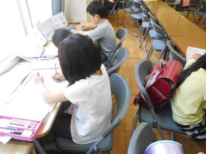放課後まなび教室でも頑張って宿題や課題に取り組んでいます。スタッフさんのサポートも大変助かっています。課題が終わった人は,折り紙などで楽しませてもらっています。