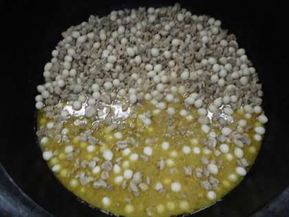 麦ごはん・牛乳・鶏肉のさっぱり煮・小松菜のごまいため・五目煮豆