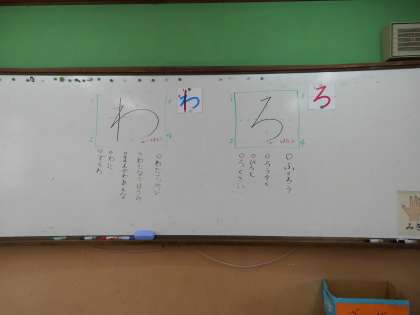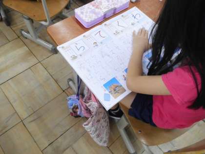 ひらがなの学習も終わりに近づいてきました。先生に丸をもらおうと,頑張ってていねいに練習しています。授業中だけでなく,家での勉強などでもていねいな字を書くように心がけましょう。